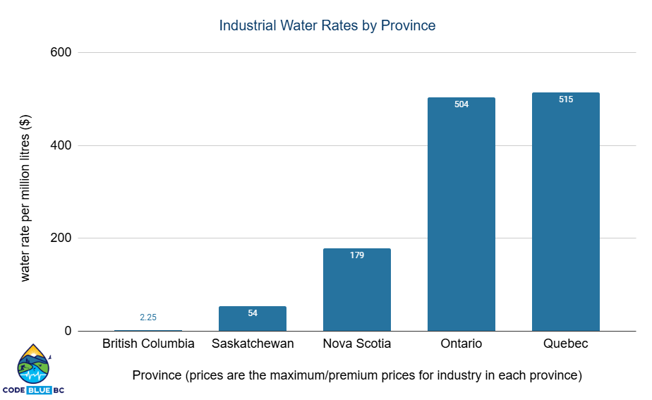 But if a major company in BC wasted 1 million litres of water, sometimes polluting it forever with toxic chemicals and removing it from the water cycle, they would pay a maximum of just $2.25. That’s how cheap industrial water use is in our province. Many industries don’t even have to report how much they use.